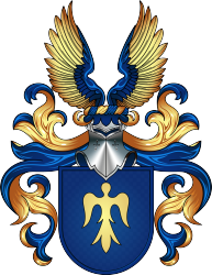 golden, gekröntem, rotem Adler, überdeckt von blauem
