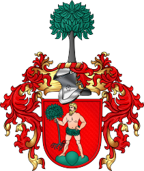 In Rot auf grünem Dreiberg wilder Mann, in der Rechten